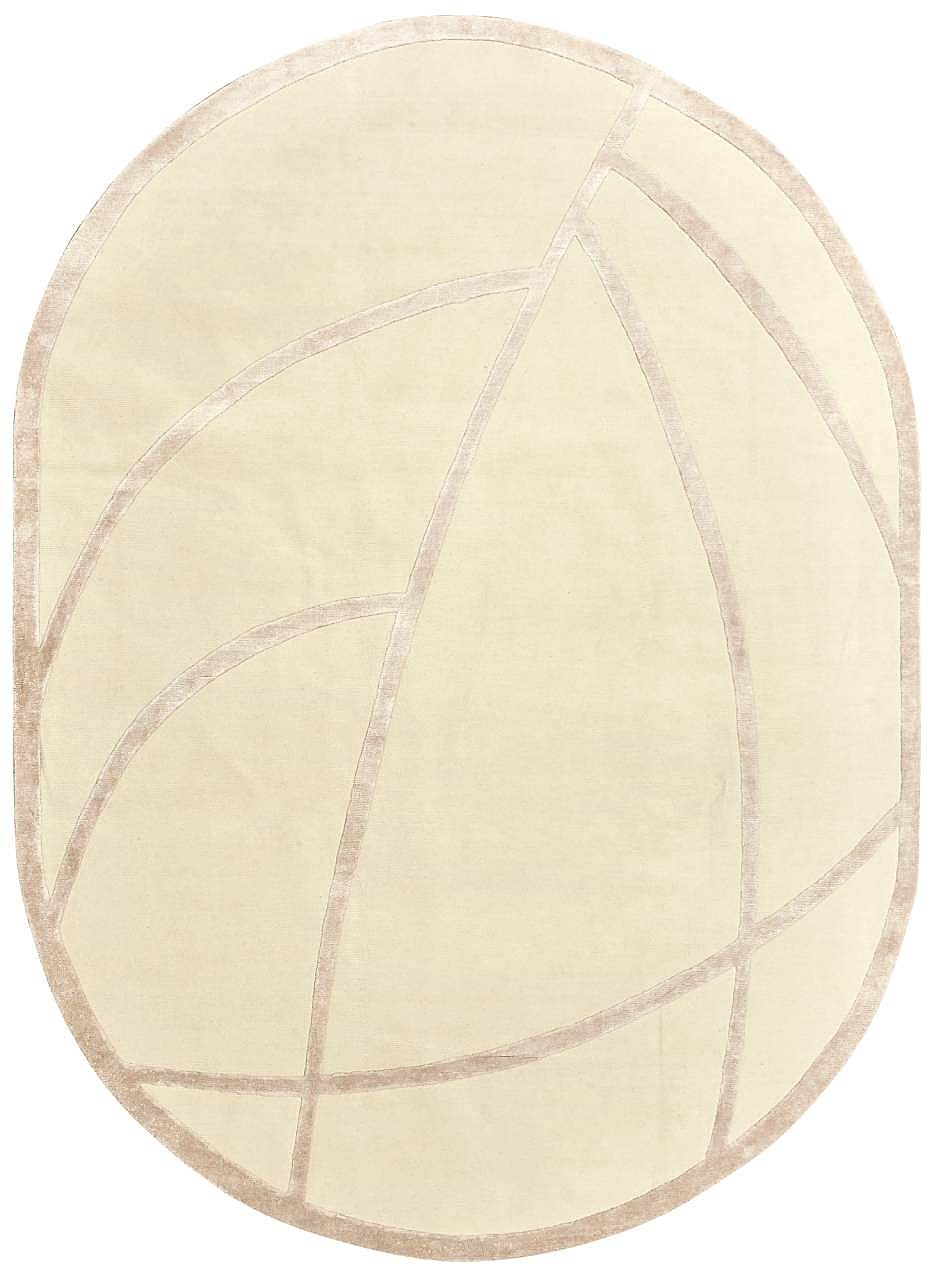 Бежевый фон ковра создаёт ощущение чистоты и мягкого света, а плавные линии орнамента напоминают развернутые листовые формы, словно застывшее Pin-Up природы в абстрактной интерпретации.